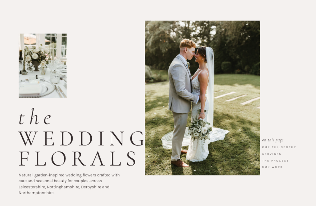 “Creating seasonal, natural floral design for modern couples.”